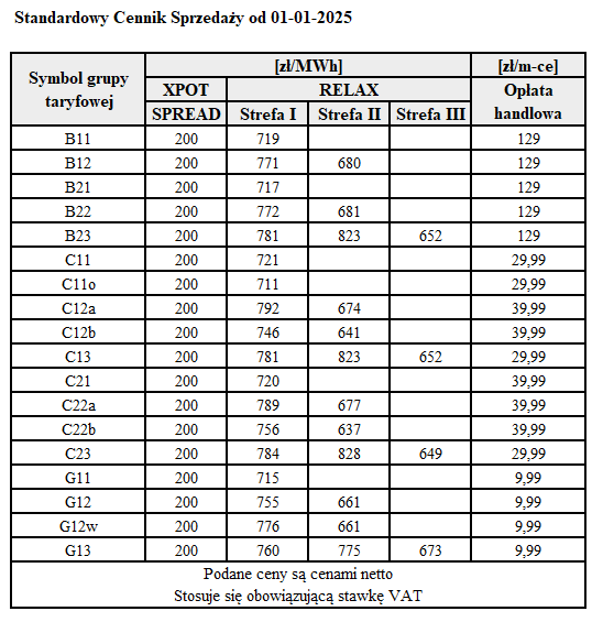 W przypadku podmiotu uprawnionego do skorzystania z ustawy o cenach maksymalnych i złożenia prawidłowego oświadczenia cena za energię elektryczną będzie wynosiła 785 zł/MWh + VAT i akcyza do 30 września 2023r. i 693 zł/MWh + VAT i akcyza - od 1 października 2023r.